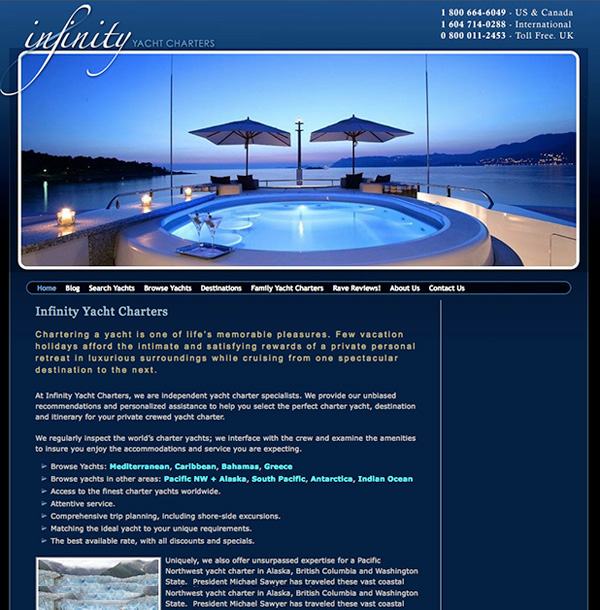 Infinity Yacht Charters asked ReadyGo Media to design their new logo and letterhead. They charter a vast range of yachts, from modest to majestic five star experiences in the Caribbean, Alaska, Bahamas, Mediterranean an worldwide. They rebranded to reflect a new business strategy.